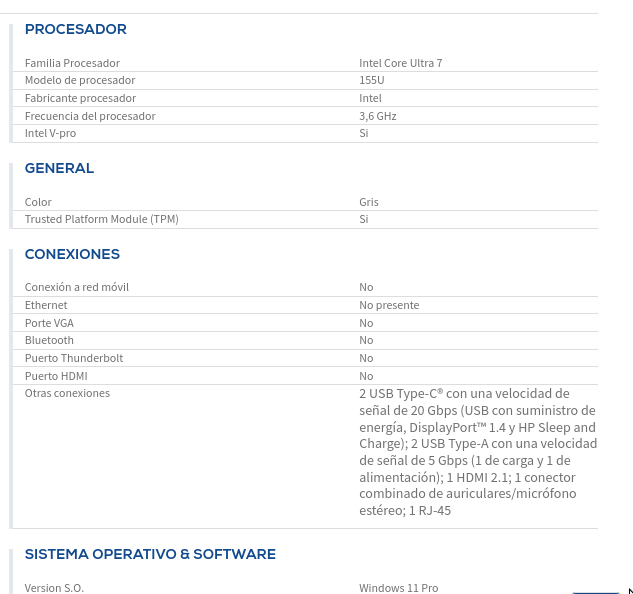 Portátil - HP ProBook 460 G11 16" Intel® Core™ Ultra 7 155U