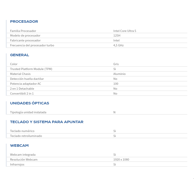 - Familia Procesador: Intel Core Ultra 5